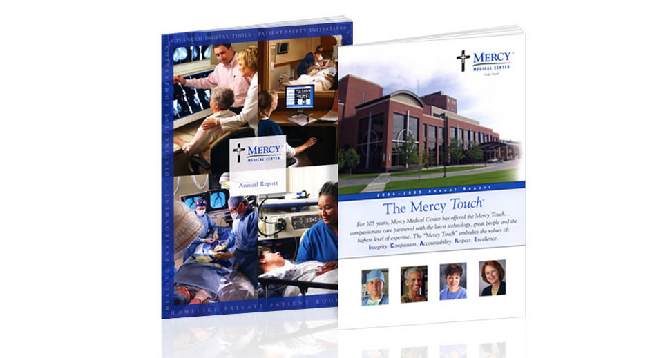 For our first project with Mercy Medical Center several decades ago, we were asked to develop concepts for a 24-page, full-color magazine that would be called The Mercy Touch magazine. We teamed up with their in-house editor and recommended freelance copywriters, a professional photographer, and Cedar Graphics in Hiawatha, Iowa to print it. The result was a dynamic marketing tool that made quite an impact. It went on to win several awards and helped to boost the Mercy Medical Center brand. We designed, art directed, and oversaw the production of quarterly issues for over 10 years until we handed it off to their in-house staff. We’ve continued to produce hundreds of brochures, flyers, annual reports, and other marketing materials whenever they need us.