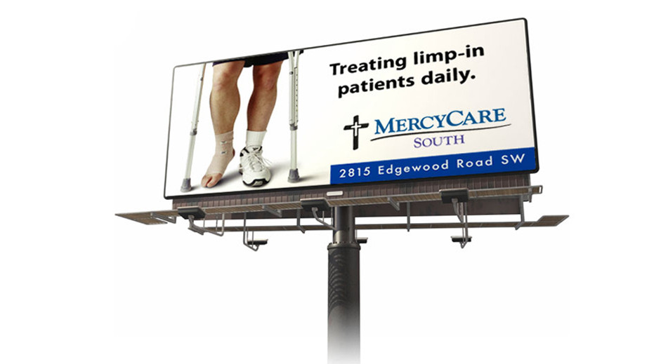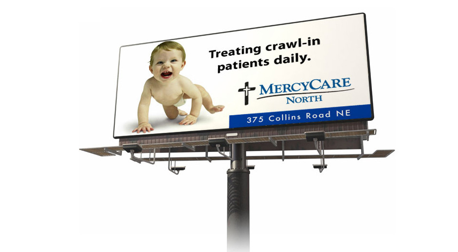 When Mercy Medical Center first began building their network of MercyCare Community Physicians offices many years ago, they asked us to introduce the new facilities in an attention-getting way that would also give people a sense of who would use their services. We came up with the “Walk-in, Limp-in, Crawl-in” concept, which set the tone for the campaign. We created outdoor billboards, newspaper ads, and direct mail postcards, which led to more awards—but more importantly—a stronger brand and more patients for Mercy.