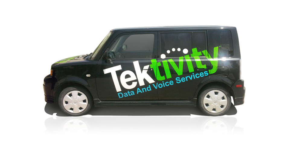 And nothing says “forward-thinking company” quite like a black Scion zooming down the road with a gigantic logo plastered diagonally across both sides!